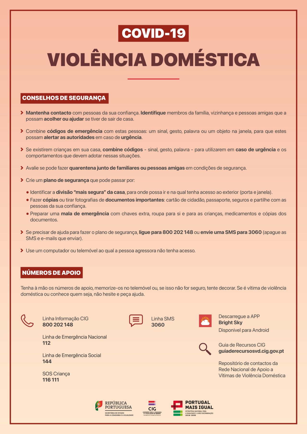 O Governo de Portugal tem em curso a campanha de Prevenção e Combate à Violência Doméstica #eusobrevivi, para sensibilizar a população para esta temática e apoiar quem é, ou poderá vir a ser, vítima deste crime. Assim sendo, nesta campanha o Governo dá a conhecer os contactos que podem ser utilizados para ajudar as pessoas vítimas de violência doméstica e deixa também alguns conselhos práticos. Se necessitar de ajuda pode utilizar os contactos aqui mencionados, nomeadamente pelos telefone 800 202 148, mensagem para o 3060 ou pelo email violencia.covid@cig.gov.pt O conteúdo Campanha de prevenção e combate à violência doméstica aparece primeiro em Município de Elvas.