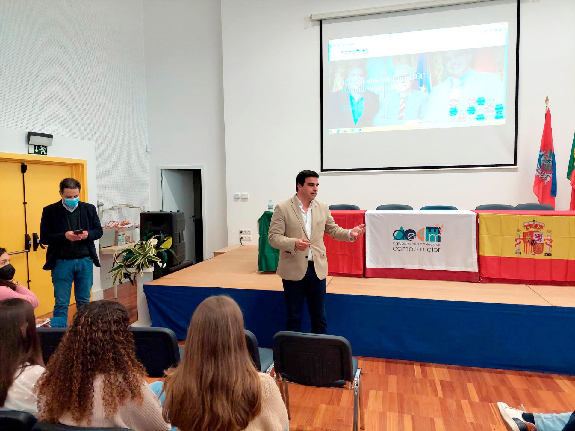 Os Agrupamentos de Escolas de Elvas, Campo Maior, e Badajoz, assinalaram hoje o Dia da Eurocidade, com a exibição do filme promocional da EuroBEC e do seu hino.O presidente da Eurocidade Badajoz – Elvas – Campo Maior, comendador José Rondão Almeida, esteve presente numa destas ações, na Escola Secundária D. Sancho II, acompanhado pelo coordenador do projeto, o professor João Paulo Garrinhas.Em Campo Maior desenvolveu-se a mesma iniciativa com a presença do presidente Luís Rosinha, numa atividade amplamente frequentada pelos alunos desse agrupamento. Badajoz acolheu estas iniciativas em sala de aula com o objetivo de aprofundar e desenvolver o conceito da EuroBEC. O conteúdo Dia da Eurocidade assinalado nas escolas aparece primeiro em Município de Elvas.